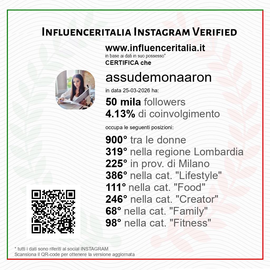 Influencer Instagram assudemonaaron verificato da influenceritalia.it: