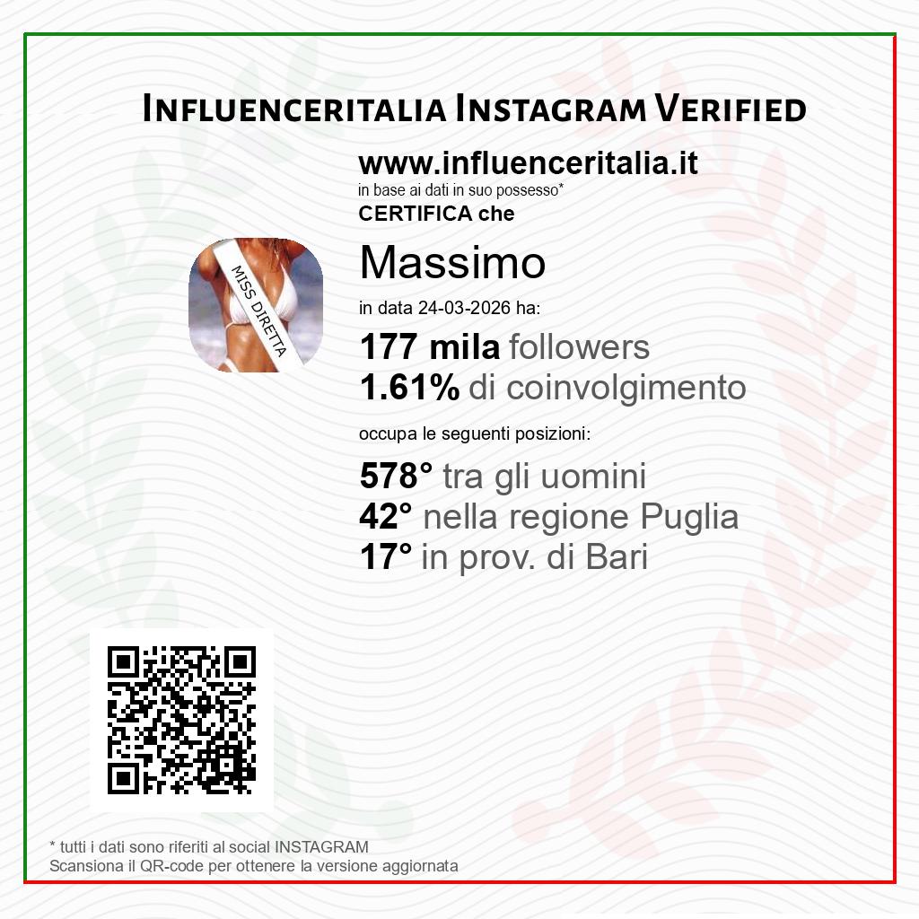 Influencer Instagram Massimo verificato da influenceritalia.it: