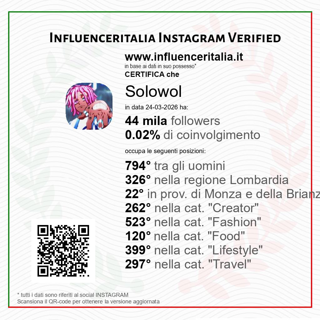 Influencer Instagram Solowol verificato da influenceritalia.it: