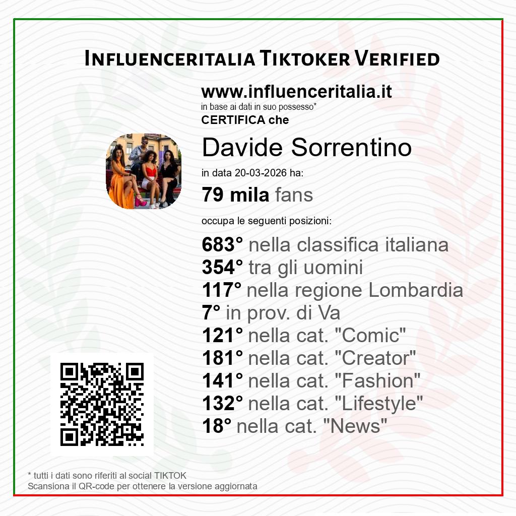 Tiktoker verified by influenceritalia.it: Davide Sorrentino