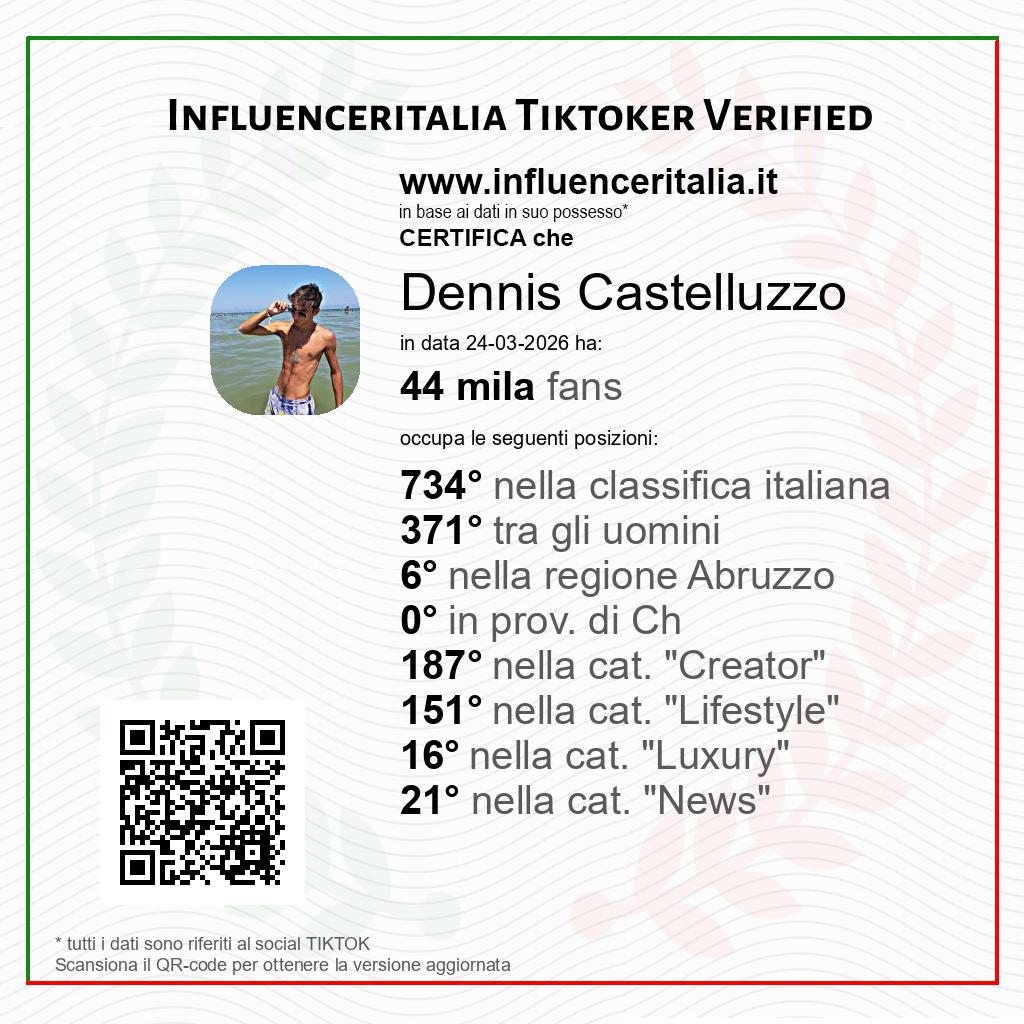 Tiktoker verified by influenceritalia.it: Dennis Castelluzzo