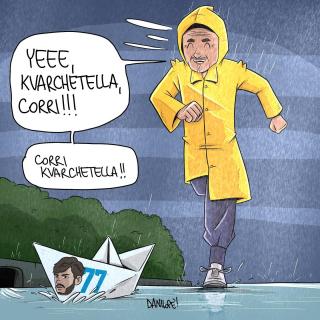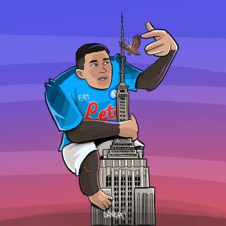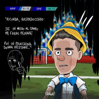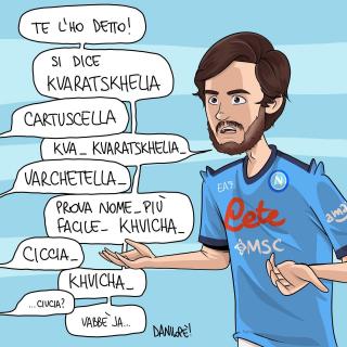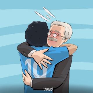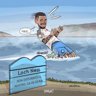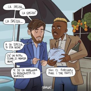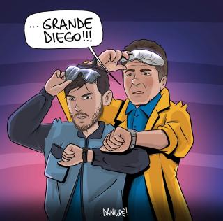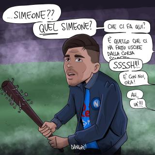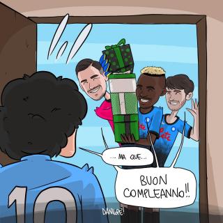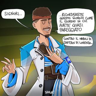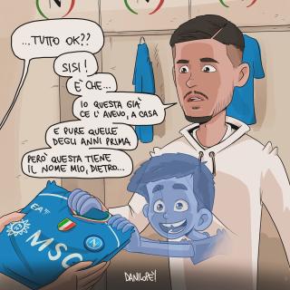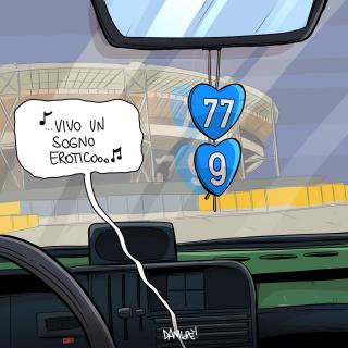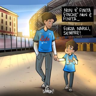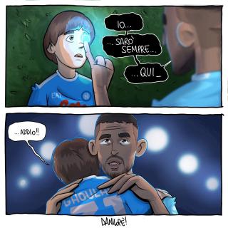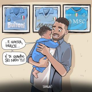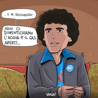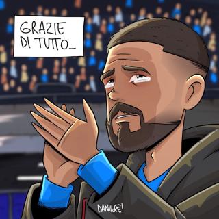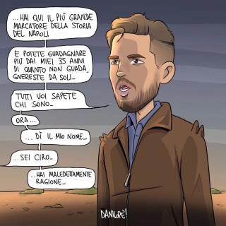 Sei stato in assoluto il soggetto preferito delle mie vignette. Grazie di cuore per le gioie e gli spunti che mi hai regalato, ma soprattutto per aver dimostrato al mondo intero che essere napoletano è uno stato dell’anima, e non una semplice questione di luogo di nascita. Forse la tua storia con il Napoli è finita, sono sicuro che quella con Napoli ha ancora molte, molte pagine da raccontare.