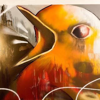 “Pazienza†🦋 / tratto pen e spray su tela 70x100.