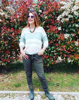 Adoro il jeans a vita alta, ha una vestibilità perfetta, è super elasticizzato ed è molto comodo. Ho abbinato una maglia a righe con scolo a V e maniche lunghe di evalessofficial . Indosso i bellissimi gioielli di bijoubrigitte