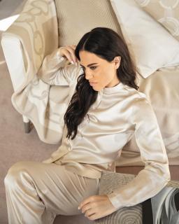 Cover harpersbazaarbg: “Italian actress and activist Melania Dalla Costa, the United Nations ambassador for the fight against violence against women, shines in a new dramatic role as an elegant and aristocratic woman during the Second World War. Melania starred in the film "La Seconda Via" directed by Alessandro Garilli.â€