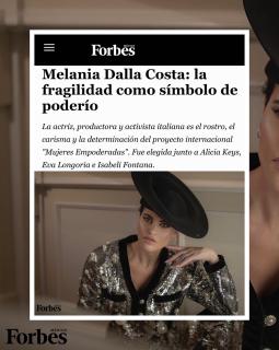 “Attrice, sceneggiatrice, produttrice e attivista italo francese. Per Melania Dalla Costa l’arte è un linguaggio universale che scuote le anime e la libertà è una farfalla blu. È stata appena scelta insieme ad #EvaLongoria, #AliciaKeys, #IsabeliFontana per un progetto internazionale perché è la voce della giustizia, dei diritti umani e dell’ uguaglianza e l’esercita con anima, intelligenza e coscienza per un mondo con donne più forti, belle, sensazionali. Tra il 2020 ed il 2021 è stata sulle copertine di prestigiosi magazine internazionali. L’artista combatte per i più vulnerabili e affronta le battaglie di tutti, mettendo anche a rischio la propria vita, facendolo con chiarezza e determinazione. La sua professoressa di italiano la chiamava “la passionariaâ€. Melania vuole attraversare il mondo, scoprirlo, dargli voce. Lo fa e lo farÃ