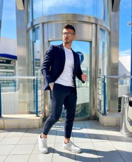 En mi opinión siempre es mejor estar cómodo y a gusto, mezclar lo elegante a lo deportivo, ciertamente no todo negro y para mà el azul lo ideal y tal vez mezclarlo con blanco, elegà una chaqueta elegante y cómoda con una camiseta blanca ,un pantalón azul suave con zapatos deportivo poco ostentoso, digamos que estás muy cómodo pero seguro todos se van a acordar de ti el primer dÃa de trabajo 👨â€ðŸ’»