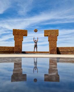 In corrispondenza del solstizio d’estate l’ombra del sole proiettata da un disco posto alle spalle del palco proietta un cerchio che coincide con uno spazio nero circolare sul palco. Allo stesso modo dalla bocca di una scultura al tramonto passa un raggio di sole.