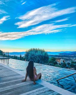 La piscina del bellissimo Eden Rose Grand Hôtel vista Bormes-les-Mimosas