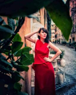 in un vestito rosso
